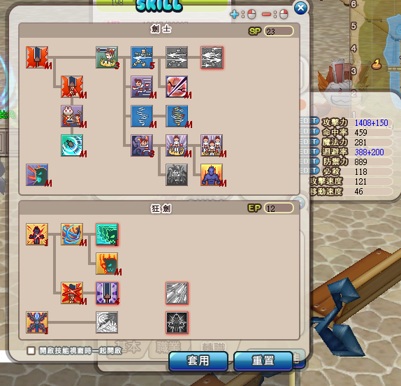 技能方面我點滿了雙範圍技.流雲斬.捨棄了光速,因為覺得用不到而且有CD不太喜歡