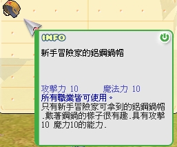 一開始創人物就會送 鍋蓋頭 7天 (屬性10攻10魔)