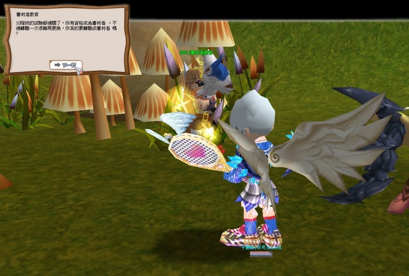 我到這時候才知道原來有個新手教育區,解完所有任務可以拿到天使呆呆拳套.G +4,超級好用的!而且任務解完差不多也快10等了