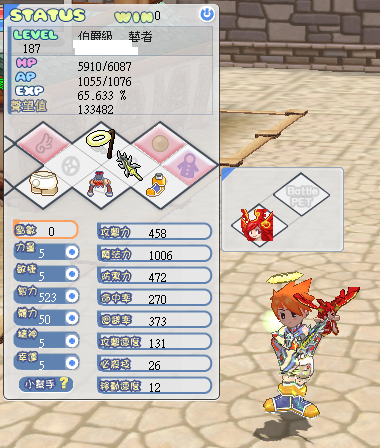 5.本人能力值:1轉19力31敏 其餘全智 2轉 50體.其餘全智